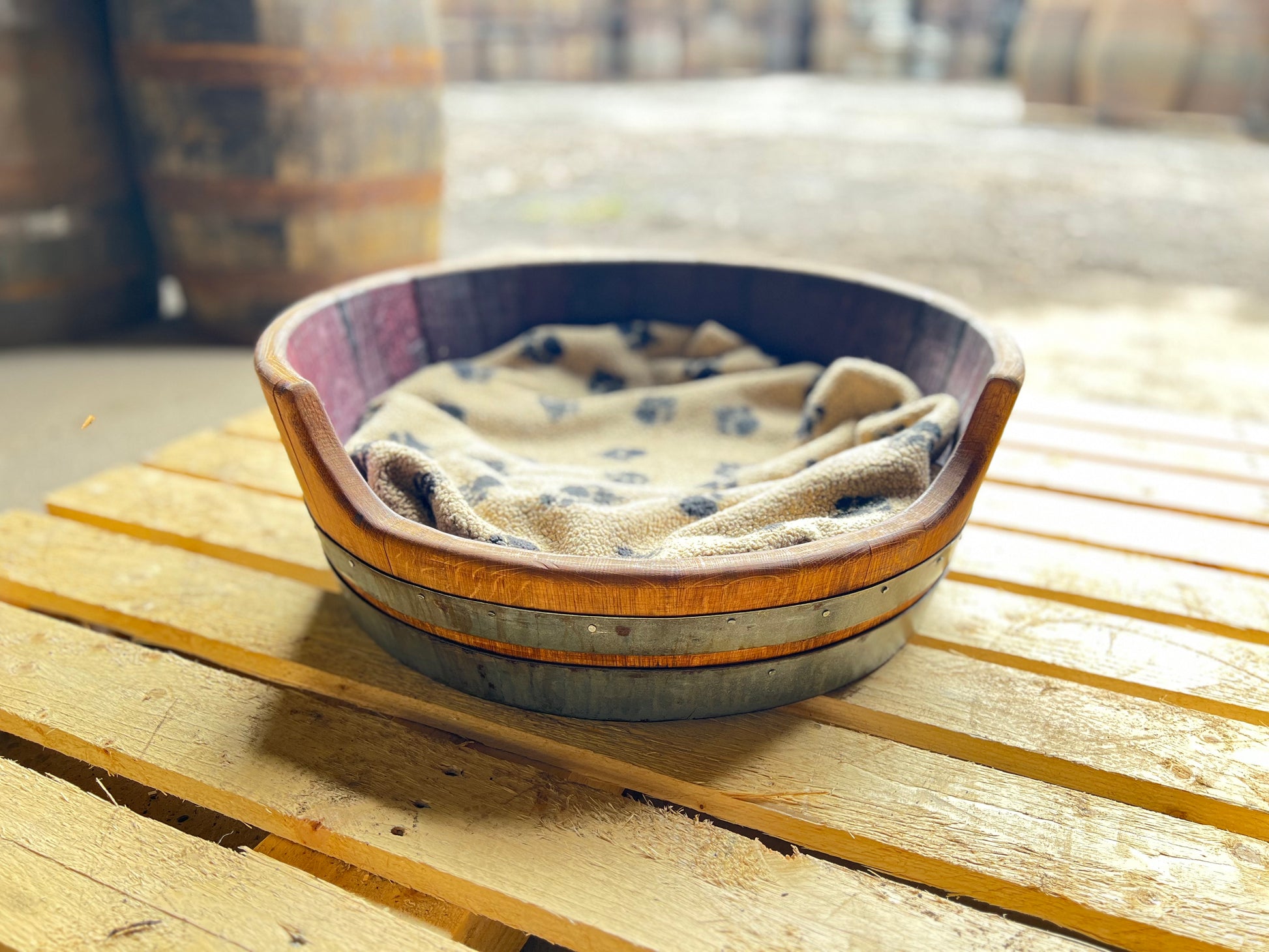 - Original galvanised steel hoops retained for authentic finish